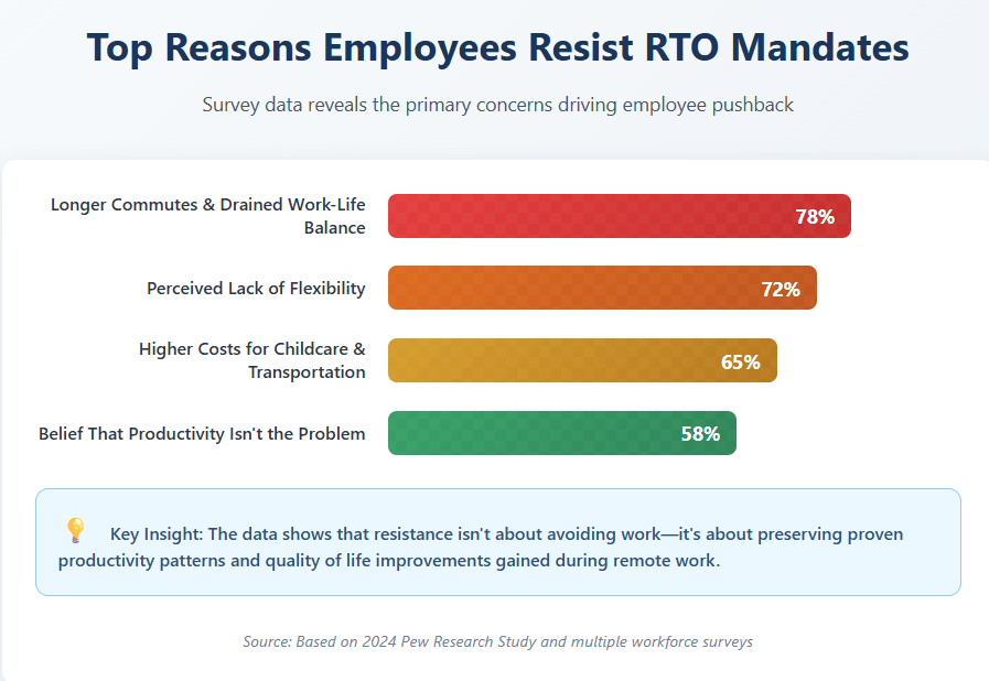Employees’ reality? Longer commutes, less flexibility, and weaker recruiting leverage.